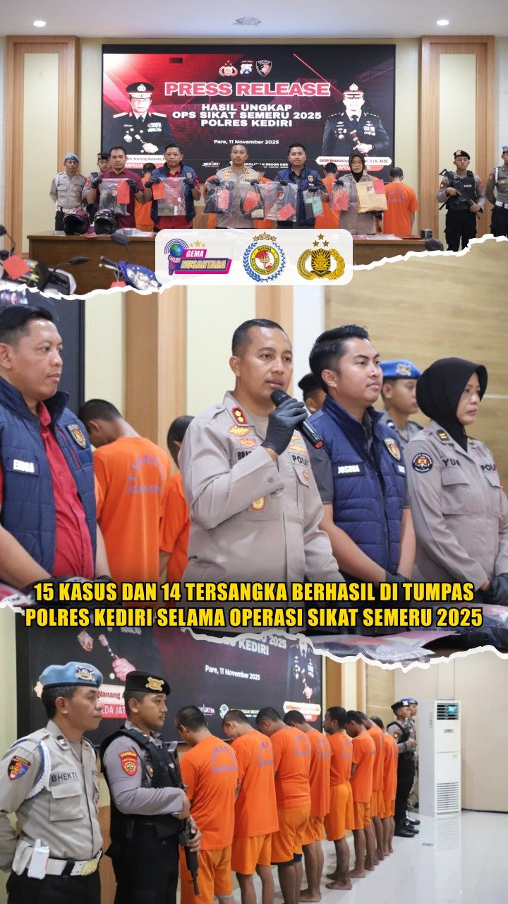 15 Kasus dan 14 Tersangka Berhasil di Tumpas Polres Kediri Selama Operasi Sikat Semeru 2025.