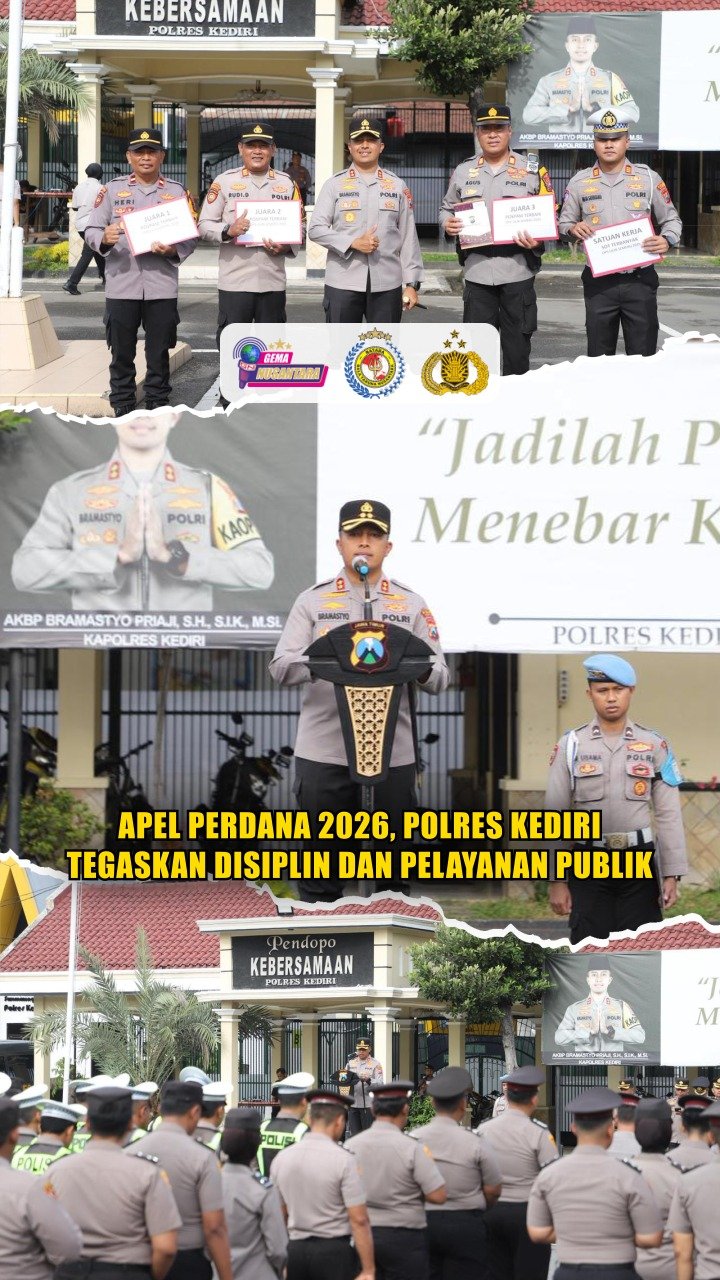 Apel Perdana 2026, Polres Kediri Tegaskan Disiplin dan Pelayanan Publik