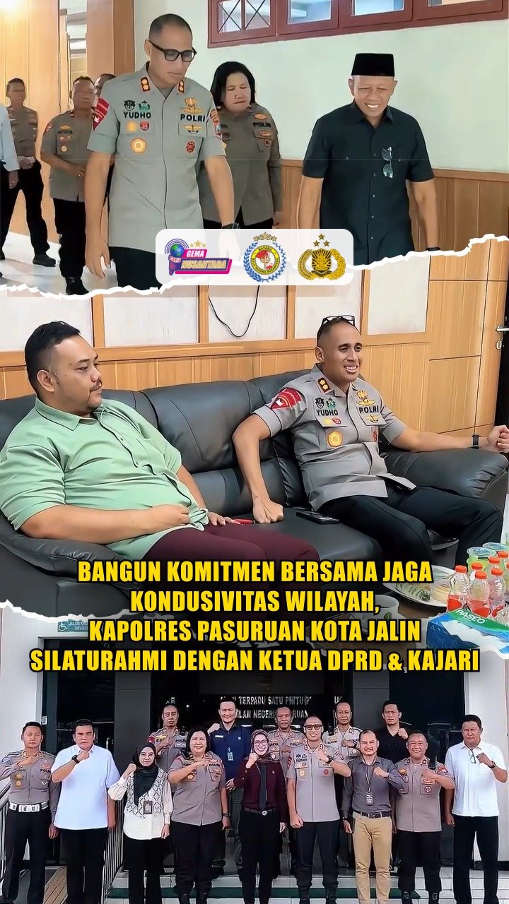 Pasuruan Kota – Kapolres Pasuruan Kota AKBP Titus Yudho Uly, S.I.K., M.Si., melaksanakan silaturahmi dengan Ketua DPRD Kota Pasuruan dan Kepala Pengadilan Negeri Kota Pasuruan sebagai wujud penguatan koordinasi dan sinergitas antar lembaga dalam menjaga keamanan, ketertiban, serta mendukung pembangunan di Kota Pasuruan.