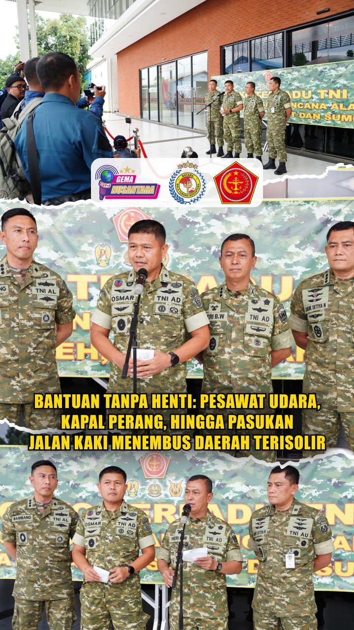 Mengerahkan 33.808 personel dari seluruh matra, Wakapuspen TNI menegaskan bahwa TNI telah mendirikan 40 dapur lapangan, membangun tujuh jembatan darurat di wilayah terdampak, mengoperasikan 49 pos pelayanan kesehatan serta menyiagakan dua KRI sebagai kapal kesehatan untuk memperkuat layanan medis dan dukungan pemulihan psikologis.