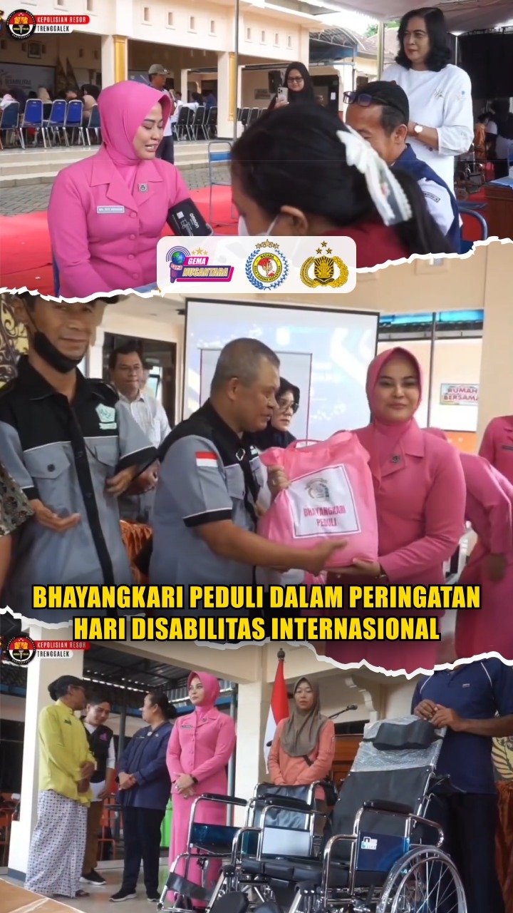 Trenggalek – Sesuai tema Hari Disabilitas Internasional yakni mewujudkan masyarakat yang ramah dan inklusif bagi penyandang disabilitas demi mendorong kemajuan sosial, Bhayangkari Cabang Trenggalek bersama Ikatan Dokter Kristen Indonesia dan bamag LKKI ( Lembaga Keagamaan Kristen Indonesia) menggelar kegiatan pengobatan gratis dan penyaluran bansos oleh Ketua Bhayangkari Cabang Trenggalek Ny. Titi Ridwan Maliki kepada masyarakat sekitar Pendopo Kantor Kecamatan Pule Kabupaten Trenggalek. Kamis (18/12/2025).
