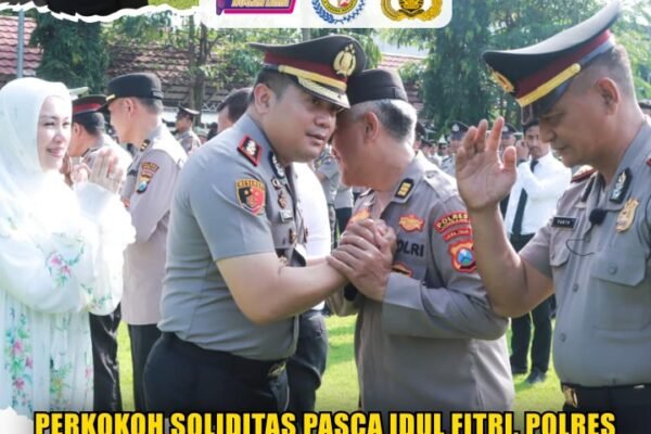 Jombang – Kapolres Jombang AKBP Ardi Kurniawan, S.H., S.I.K., CPHR., pimpin apel pagi yang dirangkaikan dengan kegiatan halalbihalal di Lapangan Apel Mapolres Jombang, Senin (30/3/2026). Dihadiri seluruh personel serta Ketua Bhayangkari Ny. Olivia Ardi bersama pengurus Bhayangkari Cabang Jombang. Dalam arahannya, Kapolres menyampaikan permohonan maaf kepada seluruh personel atas segala khilaf dan kekurangan selama menjabat…