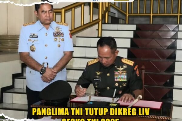 (Puspen TNI). Panglima TNI Jenderal TNI Agus Subiyanto, S.E., M.Si., resmi menutup Pendidikan Reguler (Dikreg) LIV Sekolah Staf dan Komando (Sesko) TNI Tahun Anggaran 2025 yang berlangsung di Gedung Serasan, Sesko TNI, Bandung, Jawa Barat, Kamis (4/12/2025). Di ikuti 111 Perwira Siswa yang terdiri dari 48 Pasis TNI AD, 33 Pasis TNI AL, dan 30…