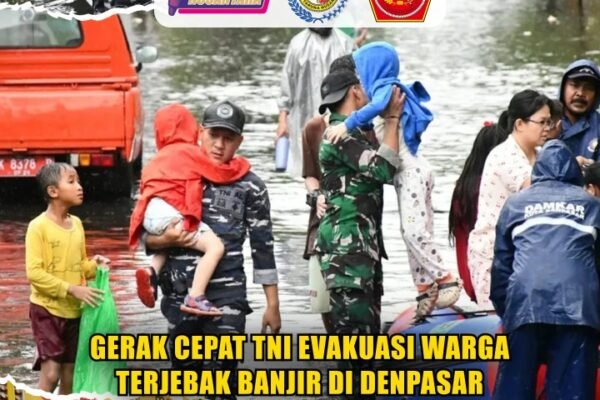(Puspen TNI) – Satgas Penanggulangan Banjir Pangkalan TNI Angkatan Laut (Lanal) Bali bergerak cepat mengevakuasi warga yang terjebak banjir di kawasan Sesetan, Denpasar Selatan, Selasa (24/2). ​Intensitas hujan yang tinggi sejak dini hari menyebabkan sejumlah pemukiman warga terendam air dengan ketinggian mencapai pinggang orang dewasa. Tim Quick Response Lanal Bali langsung diterjunkan ke lokasi dengan…