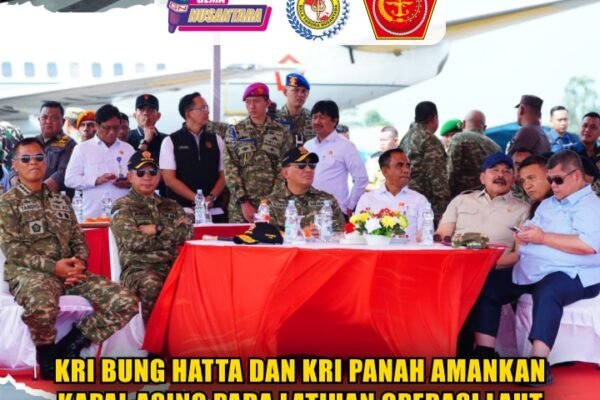 (Puspen TNI). Panglima TNI Jenderal TNI Agus Subiyanto, S.E., M.Si., mendampingi Menhan RI Jenderal TNI (Purn.) Dr. Sjafrie Sjamsoeddin, M.B.A., bersama Jaksa Agung ST Burhanuddin dan Kepala BPKP Muhammad Yusuf, menyaksikan secara langsung demonstrasi kemampuan operasi terpadu dalam Latihan Terintegrasi TNI 2025 KRI Bung Hatta-370 bersama KRI Panah-626, berlangsung di perairan Morowali, Sulawesi Tengah, Kamis…