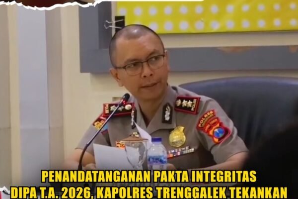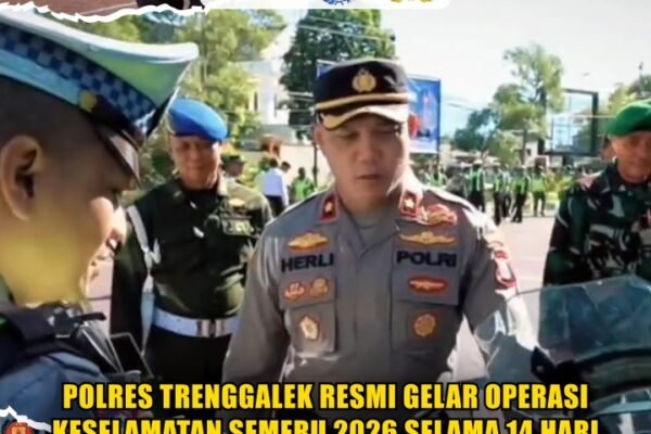 Trenggalek – Polres Trenggalek menggelar Operasi Keselamatan Semeru 2026 di halaman Mapolres. Kapolres Trenggalek AKBP Ridwan Maliki, S.H., S.I.K., M.I.K. melalui Wakapolres Kompol Herlinarto, S.E., M.M. berkenan menyematkan pita kepada perwakilan dari TNI, Polri dan Dishub sebagai tanda dimulainya operasi. Senin, (2/2). Melibatkan 60 personel gabungan dangan Tema “Terwujudnya Kamseltibcarlantas yang Aman, Nyaman dan Selamat…