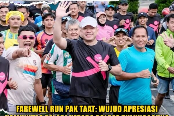 Tulungagung – 300 pelari dari komunitas Friday Running, Tulungagung Runners, ALTI, Candi Dadi Squad, dan Comedy Squad menggelar kegiatan Farewell Run Pak Taat sebagai wujud apresiasi dan kebersamaan khususnya kepada Kapolres Tulungagung AKBP Muhammad Taat Resdi, S.H., S.I.K., MTCP., atas dedikasi dan dukungannya selama bertugas. Kasi Humas Polres Tulungagung IPTU Nanang mengatakan bahwa kegiatan tersebut…