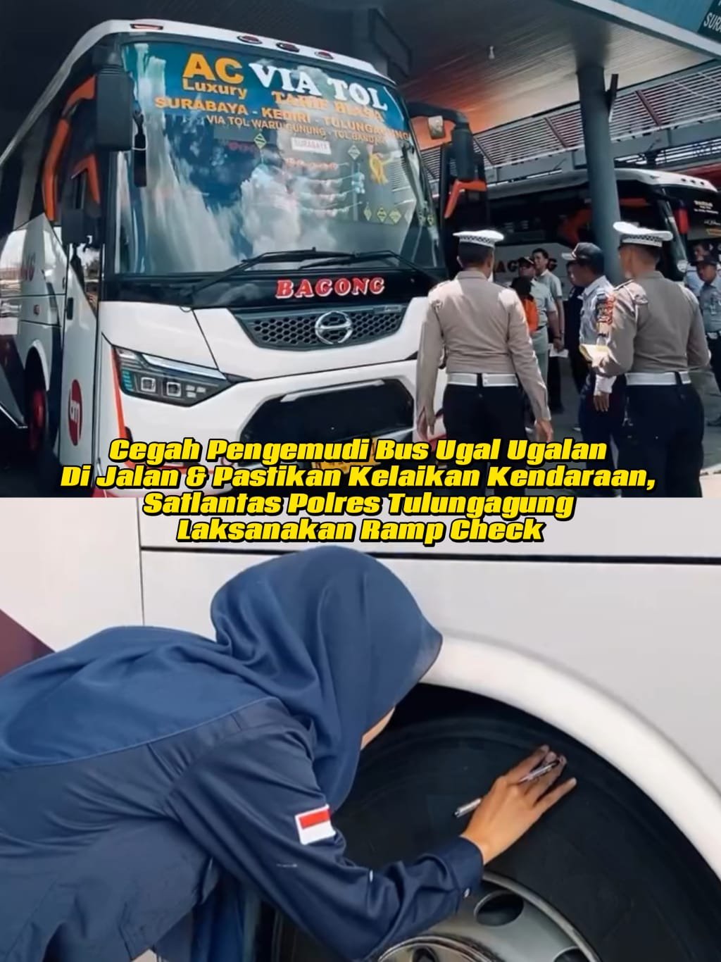 Cegah Pengemudi Bus Ugal Ugalan Di Jalan & Pastikan Kelaikan Kendaraan, Satlantas Polres Tulungagung Laksanakan Ramp Check