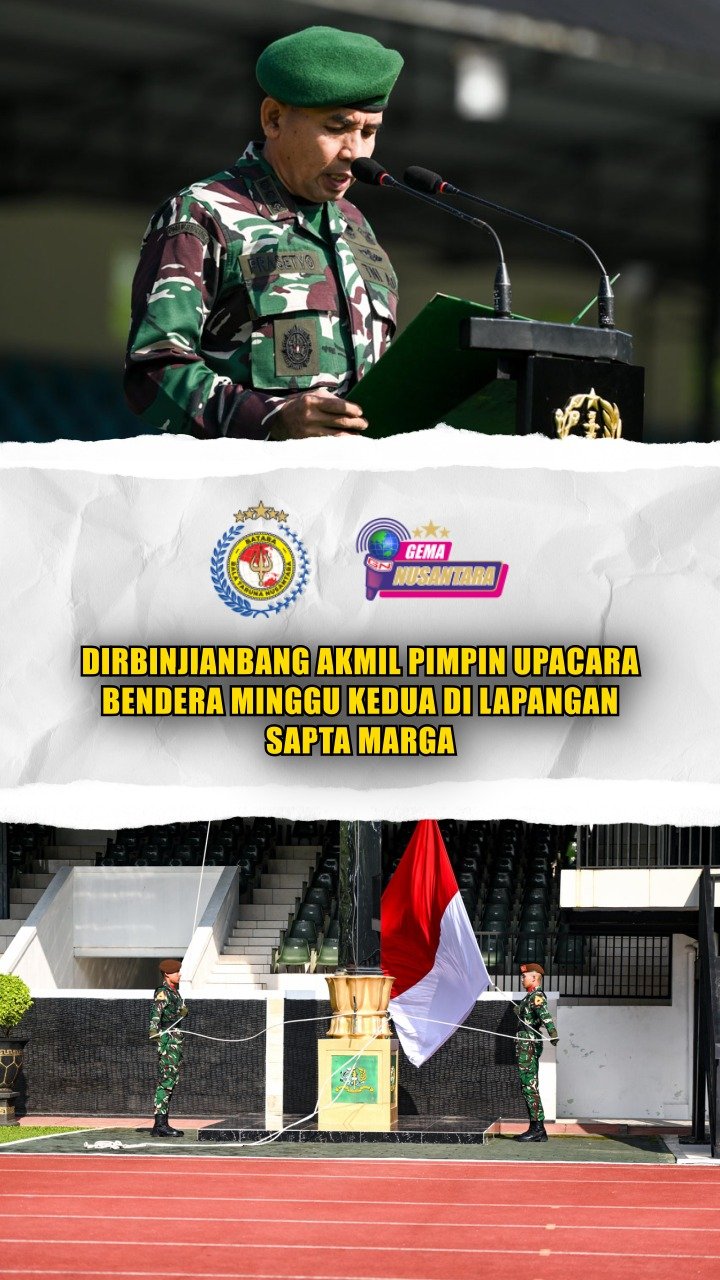 Dirbinjianbang Akmil Pimpin Upacara Bendera Minggu Kedua di Lapangan Sapta Marga