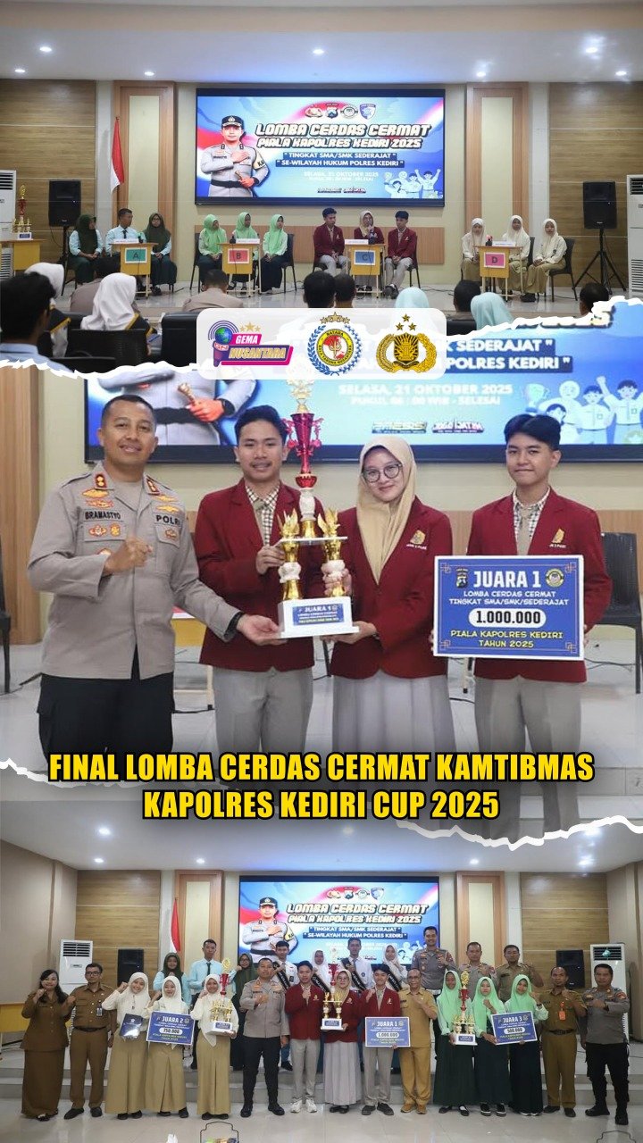 Kediri – Kapolres Kediri AKBP Bramastyo Priaji, S.H., S.I.K., M.Si., menghadiri sekaligus membuka Final Lomba Cerdas Cermat Kamtibmas Kapolres Kediri Cup 2025 yang diikuti para pelajar SMA dan SMK se-Kabupaten Kediri. Selasa, 21 Oktober 2025. Bertempat di Aula Wicaksana Laghawa Polres Kediri. Di ikuti 30 tim dari berbagai sekolah menengah atas.
