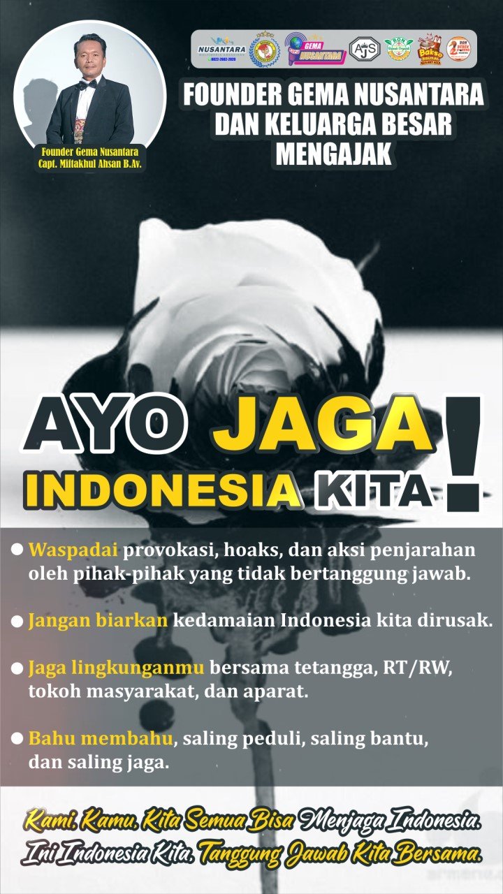 Founder Gema Nusantara Capt. Miftakhul Ahsan B.Av. Dan Keluarga Besar Mengajak Ayo Jaga Indonesia Kita!.