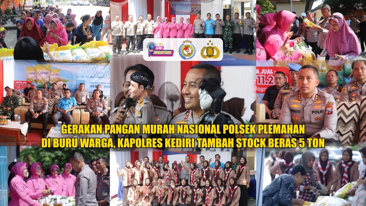 KEDIRI – Polres Kediri melalui Polsek Plemahan kembali menggelar Gerakan Pangan Murah (GPM) Nasional di halaman Mako Polsek Plemahan pada Kamis (14/8/2025).