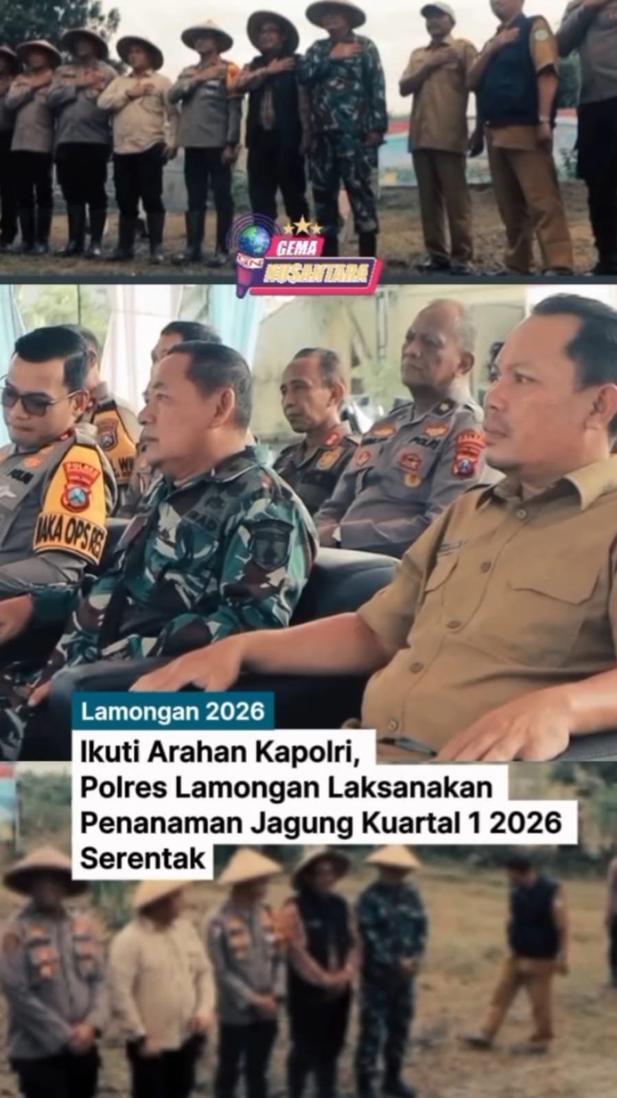 Lamongan – Dukung penuh program Pemerintah dalam mewujudkan Swasembada Pangan, Polres Lamongan melaksanakan kegiatan Tanam Jagung Serentak pada Kuartal 1 Tahun 2026.