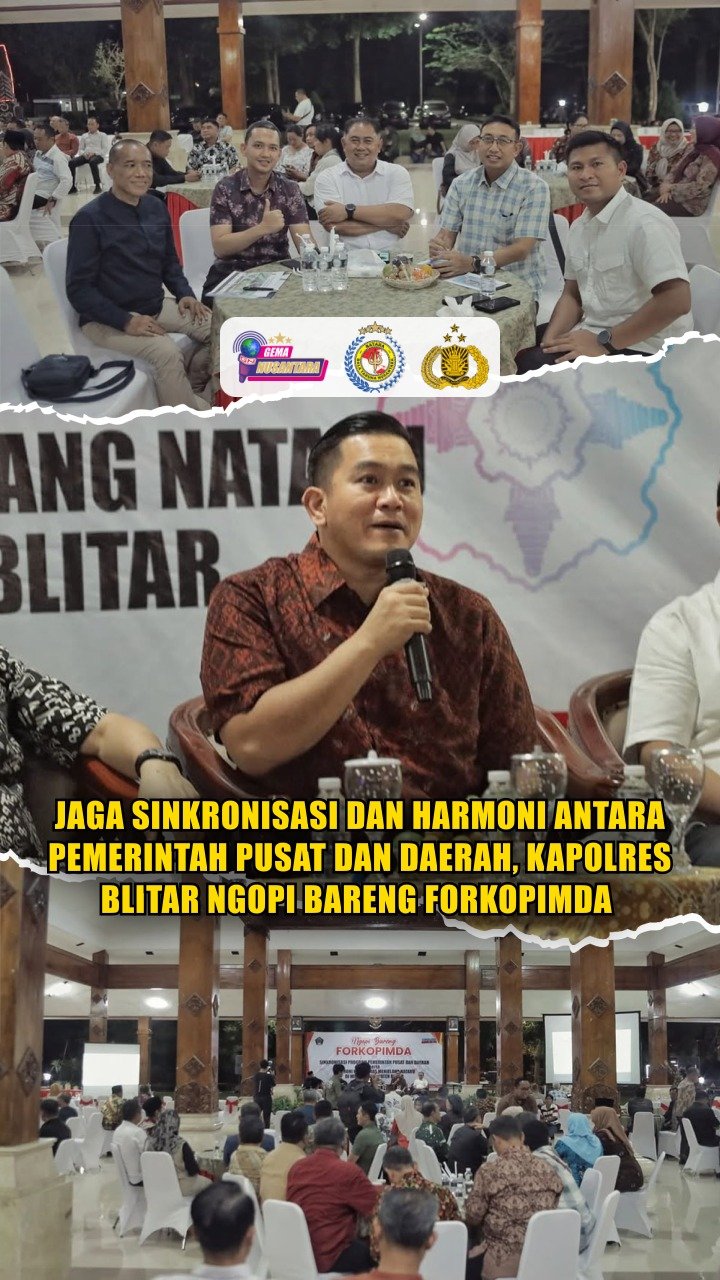Blitar – Kapolres Blitar AKBP Arif Fazlurrahman, S.H., S.I.K., M.Si., menghadiri undangan Ngopi Bareng Forkopimda dalam rangka sinkronisasi antara Pemerintah Pusat dan Daerah serta menjaga harmoni kamtibmas menjelang Nataru di wilayah Kabupaten Blitar. Bertempat di Pendopo Sasana Adhi Praja, Kanigoro.