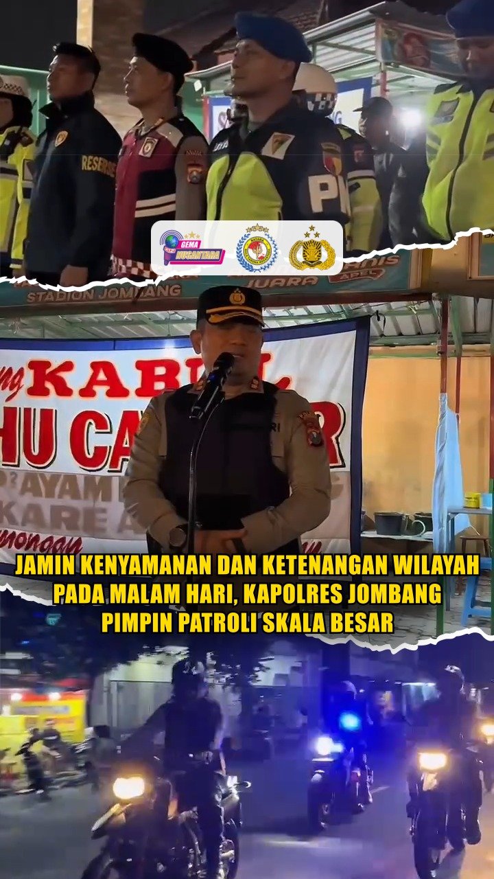 Jamin Kenyamanan dan Ketenangan Wilayah Pada Malam Hari, Kapolres Jombang Pimpin Patroli Skala Besar