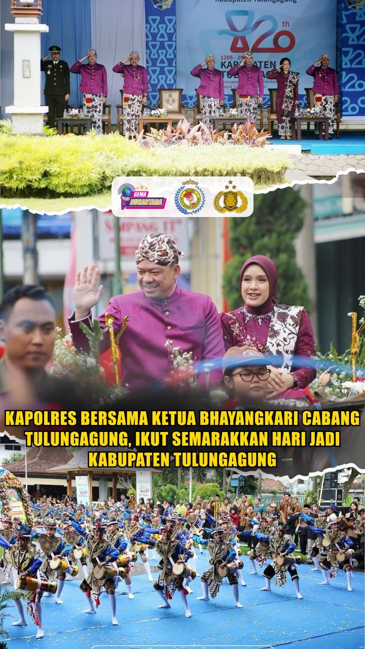Tulungagung – Kapolres Tulungagung AKBP Muhammad Taat Resdi, S.H., S.I.K., MTCP., turut serta dalam Upacara Peringatan Hari Jadi Ke-820 dan Kirab Bersih Nagari Kabupaten Tulungagung.
