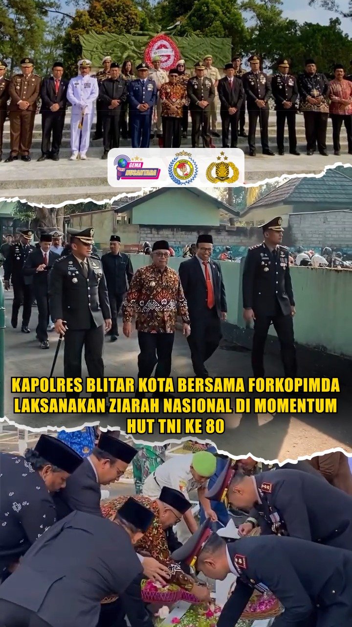 Blitar Kota – Kapolres Blitar Kota AKBP Titus Yudho Uly, S.I.K., M.Si., bersama jajaran Forkopimda melaksanakan Ziarah Nasional dalam rangka Memperingati HUT TNI ke-80 Tahun 2025 di TMP Raden Wijaya Kota Blitar.