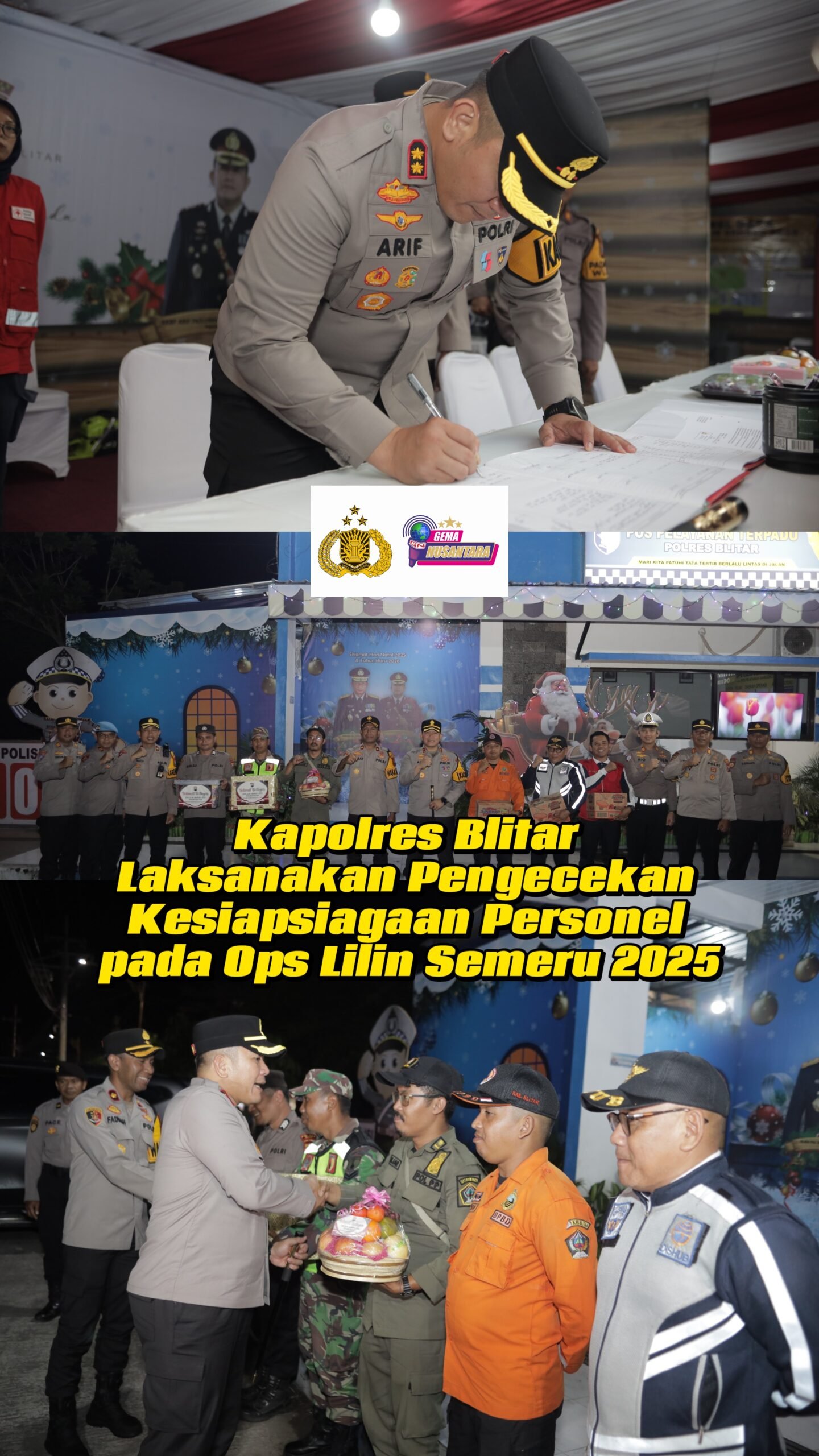 Dalam kunjungannya, Kapolres Blitar AKBP Arif Fazlurrahman, S.H, S.I.K., M.S.i. memberikan arahan kepada petugas agar senantiasa meningkatkan kewaspadaan, menjaga kesehatan, serta memberikan pelayanan terbaik kepada masyarakat. Kapolres menegaskan bahwa keberadaan Pos Pelayanan dan Pos Pengamanan merupakan bentuk kehadiran Polri di tengah masyarakat untuk memberikan rasa aman dan nyaman selama perayaan Natal dan libur Tahun Baru. Sinergi dengan instansi terkait juga terus diperkuat guna mendupkung kelancaran Operasi Lilin Semeru 2025.