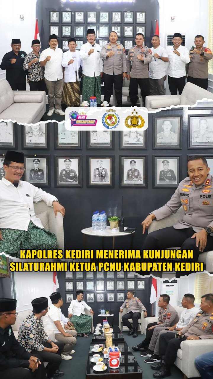 Kediri – Kapolres Kediri AKBP Bramastyo Priaji, S.H., S.I.K., M.Si., menerima kunjungan silaturahmi dari Ketua PCNU Kabupaten Kediri, KH. Moch. Makmun Mahfudz, serta Plt. Ketua PC Pagar Nusa Kabupaten Kediri, HM. Jalaludin Sulthon, S.Pd.I, beserta jajaran pengurus. Kamis, 2 Oktober 2025.