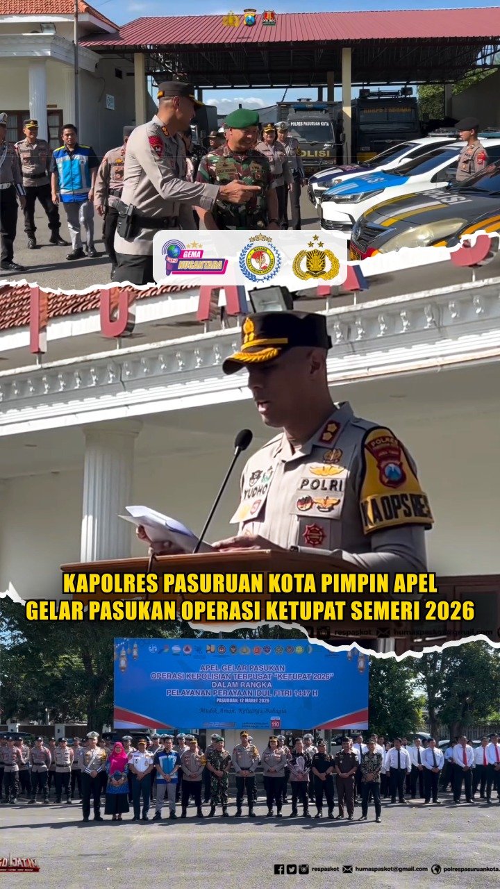 Pasuruan Kota – Polres Pasuruan Kota melaksanakan Apel Gelar Pasukan Operasi Ketupat Semeru 2026 sebagai bentuk kesiapan dalam memberikan pengamanan dan pelayanan terbaik kepada masyarakat selama perayaan Idul Fitri. Di pimpin langsung Kapolres Pasuruan Kota Akbp Titus Yudho Uly, Kamis 12 Maret 2026.