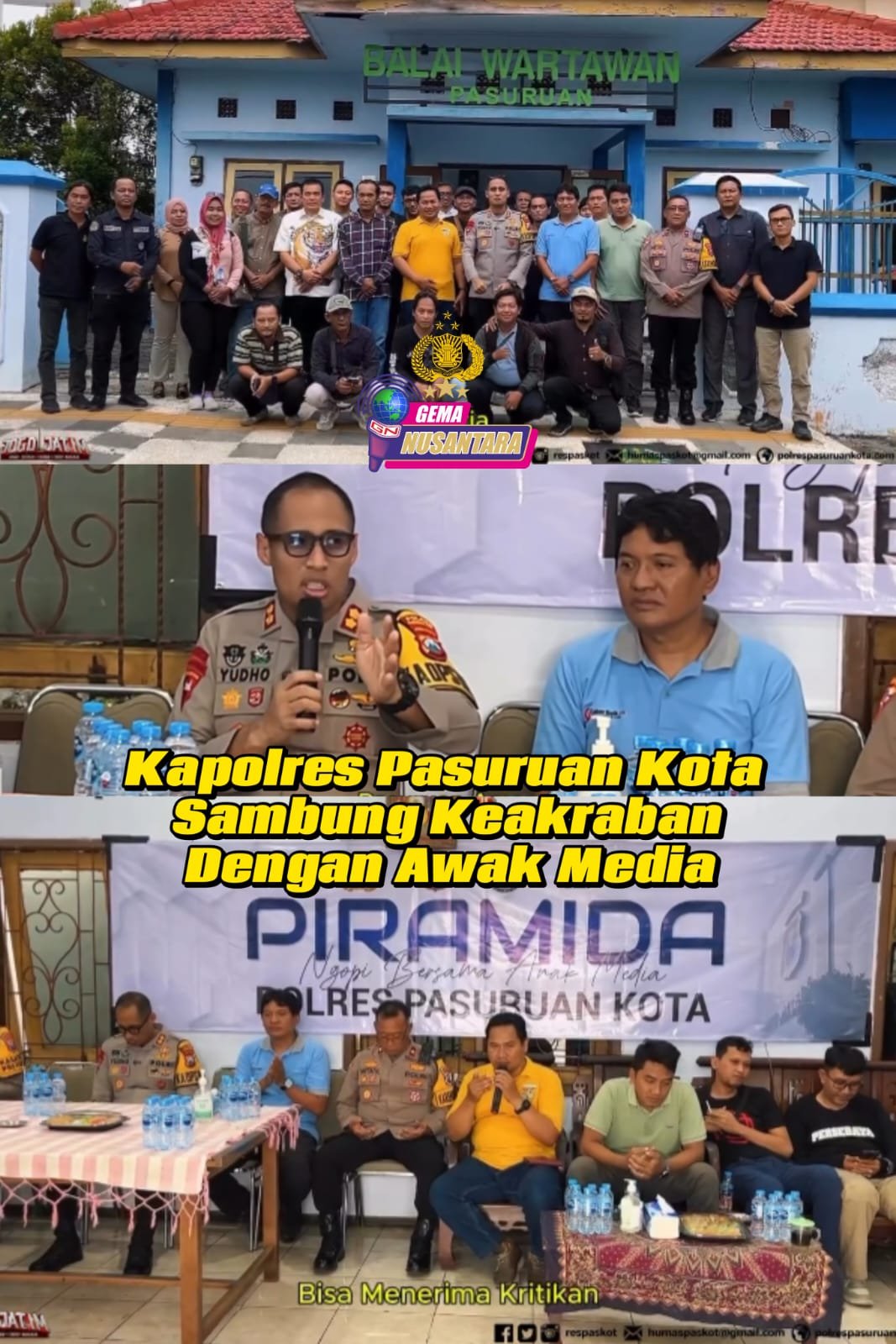 Pasuruan Kota – Bertempat di Balai Wartawan Kota Pasuruan, Kapolres Pasuruan Kota Akbp Titus Yudho Uly berdialog langsung dengan para wartawan terkait situasi kamtibmas di wilayah. Di balut dalam Kegiatan PIRAMIDA (Ngopi Bareng Media) adalah wadah silaturahmi dan penguatan sinergitas bersama Insan Pers wartawan Pasuruan Raya.