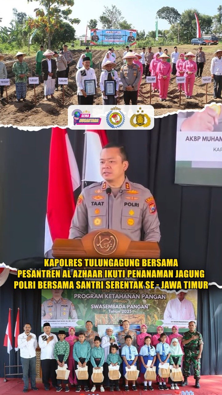 Kapolres Tulungagung Bersama Pesantren Al Azhaar Ikuti Penanaman Jagung Polri Bersama Santri Serentak Se – Jawa Timur
