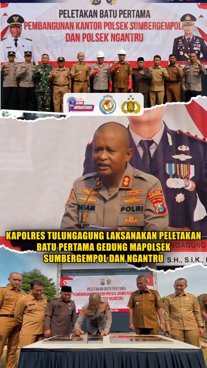 Tulungagung – Kapolres Tulungagung AKBP Dr. Ihram Kustarto, S.H., S.I.K., M.Si., M.H., melaksanakan peletakan batu pertama pembangunan Gedung Polsek Sumbergempol dan Polsek Ngantru sebagai wujud nyata peningkatan keamanan, kenyamanan, dan pelayanan kepada masyarakat.