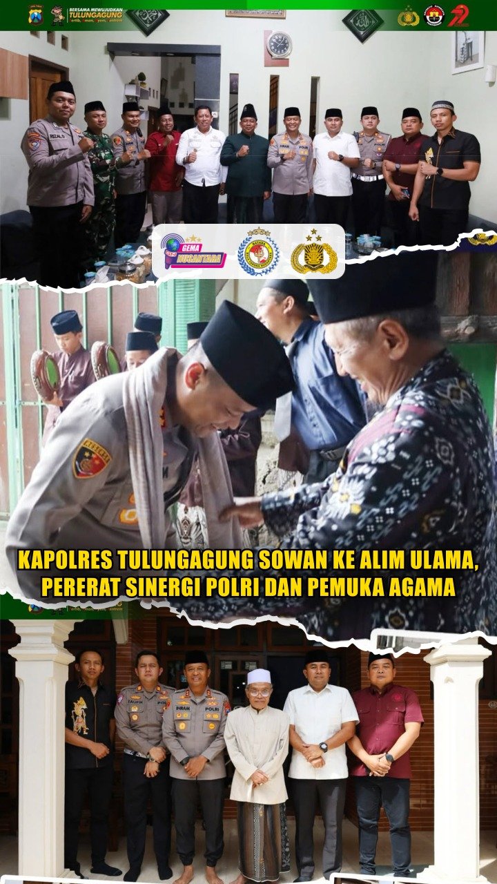 Tulungagung – Silaturahmi Kapolres Tulungagung AKBP Dr. Ihram Kustanto, S.H., S.I.K., M.Si., M.H., bersama tokoh agama sebagai upaya mempererat hubungan dan sinergi antara Polri dengan para pemuka agama di Kabupaten Tulungagung.