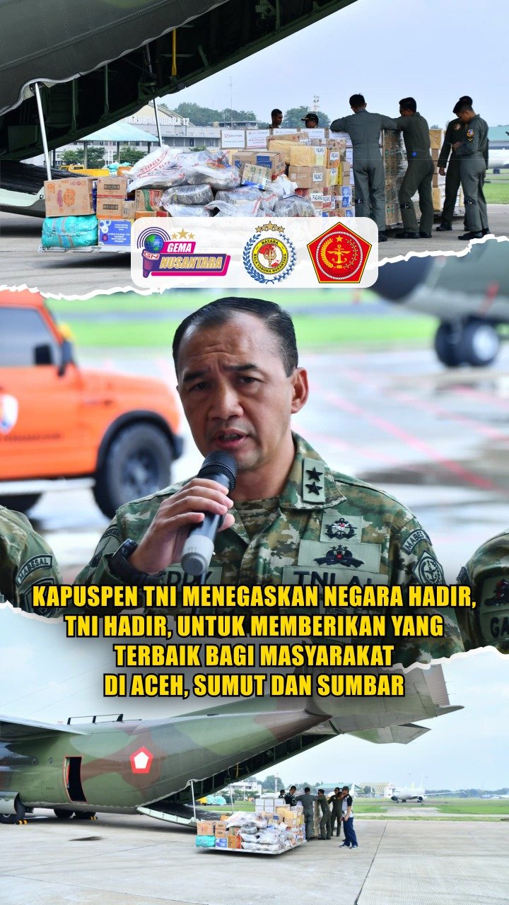 Kapuspen TNI Menegaskan Negara Hadir, TNI Hadir, untuk memberikan yang terbaik bagi masyarakat di Aceh, Sumut dan Sumbar.
