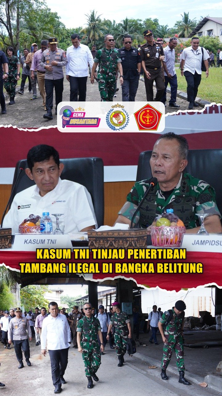 (Puspen TNI). Kasum TNI Letjen TNI Richard T.H. Tampubolon, S.H., M.M., bersama Tim Satgas Penertiban Kawasan Hutan (PKH) melaksanakan kunjungan kerja ke Provinsi Kepulauan Bangka Belitung, Selasa (30/9/2025) sebagai upaya bersama pemerintah dalam menertibkan pertambangan ilegal dan memperkuat tata kelola sumber daya alam nasional.