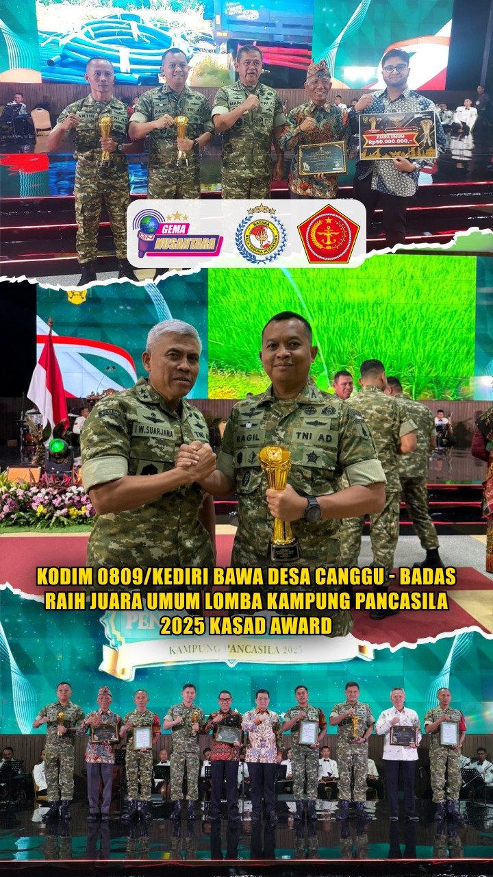 Penghargaan diberikan langsung oleh Kasad Jenderal TNI Maruli Simanjuntak, M.Sc., dan diterima langsung oleh Dandim 0809/Kediri Letkol Inf Ragil Jaka Utama, S.Hub. Int., M. H., didampingi Agus Cahyono (Kadis DPMPD Kab. Kediri) dan Sertu Kanti (Babinsa Desa Canggu) di Aula Jendral Besar A.H. Nasution Markas Besar TNI AD Jakarta. Jumat, (19/12/2025).