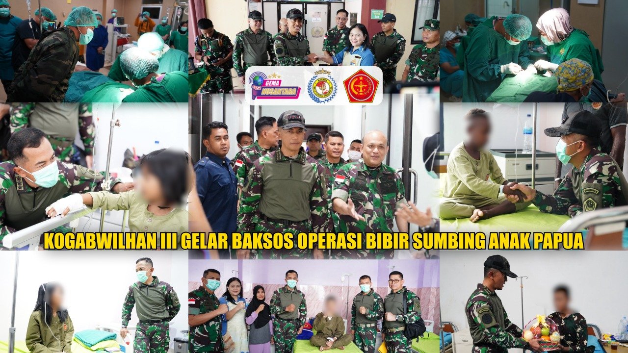 (Puspen TNI). Dalam rangka memperingati HUT ke-6, Kogabwilhan III menggelar bakti sosial operasi bibir sumbing bagi 10 anak dari daerah terpencil seperti Batas Batu, Nabire, Keerom, dan Jayapura. Menggunakan helikopter Caracal agar seluruh pasien dapat tiba di Rumah Sakit Marthen Indey (RSMI) dengan aman dan tepat waktu. Rabu 13 Agustus 2025.