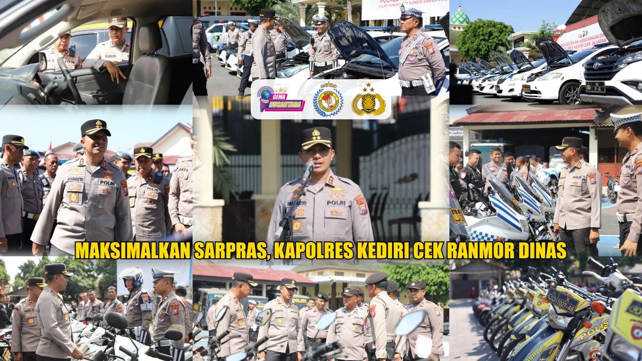 Kediri – Kapolres Kediri AKBP Bramastyo Priaji, S.H., S.I.K, M.Si., didampingi pejabat utama Polres Kediri melakukan pengecekan langsung terhadap pemeriksaan kendaraan bermotor (ranmor) dinas personel berlangsung di halaman Mapolres Kediri, Senin (25/8/2025).