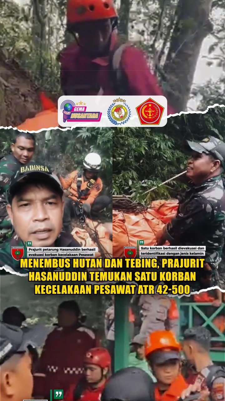 Puspen TNI — Para prajurit Kodam XIV/Hasanuddin berhasil menemukan satu korban kecelakaan pesawat ATR 42-500 yang jatuh di wilayah pegunungan Bulusaraung, Kabupaten Pangkep. Minggu, (18/1/2026).