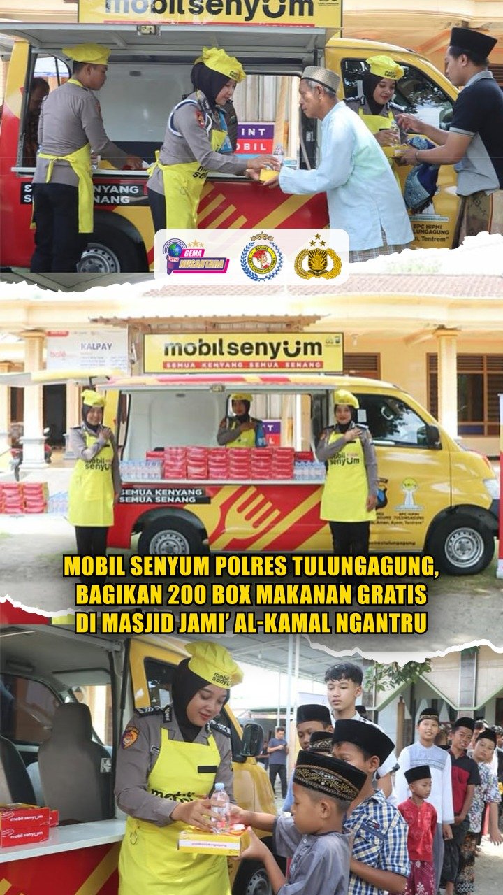 Mobil Senyum Polres Tulungagung, Bagikan 200 Box Makanan Gratis di Masjid Jami’ Al-Kamal Ngantru