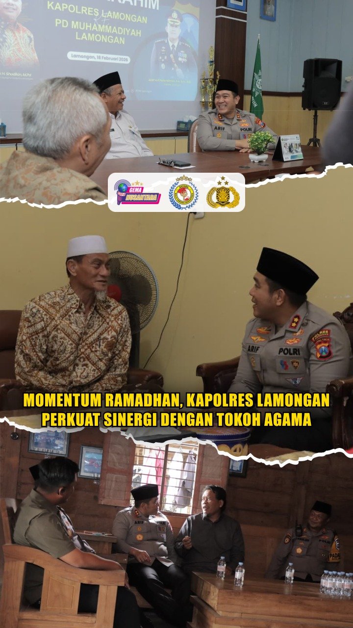 Lamongan – Momentum bulan suci Ramadan 1447 H, Kapolres Lamongan AKBP Arif Fazlurrahman, S.H., S.I.K., M.Si., melaksanakan rangkaian kegiatan silaturahmi dengan sejumlah tokoh agama dan organisasi keagamaan di wilayah Kabupaten Lamongan, Rabu (18/2).