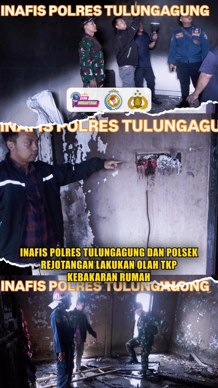 Tulungagung – Polsek Rejotangan Polres Tulungagung menerima laporan terjadinya kebakaran sebuah rumah milik Imam Kambali (55) yang beralamat di Ds. Tegalrejo, Kec. Rejotangan, Tulungagung.