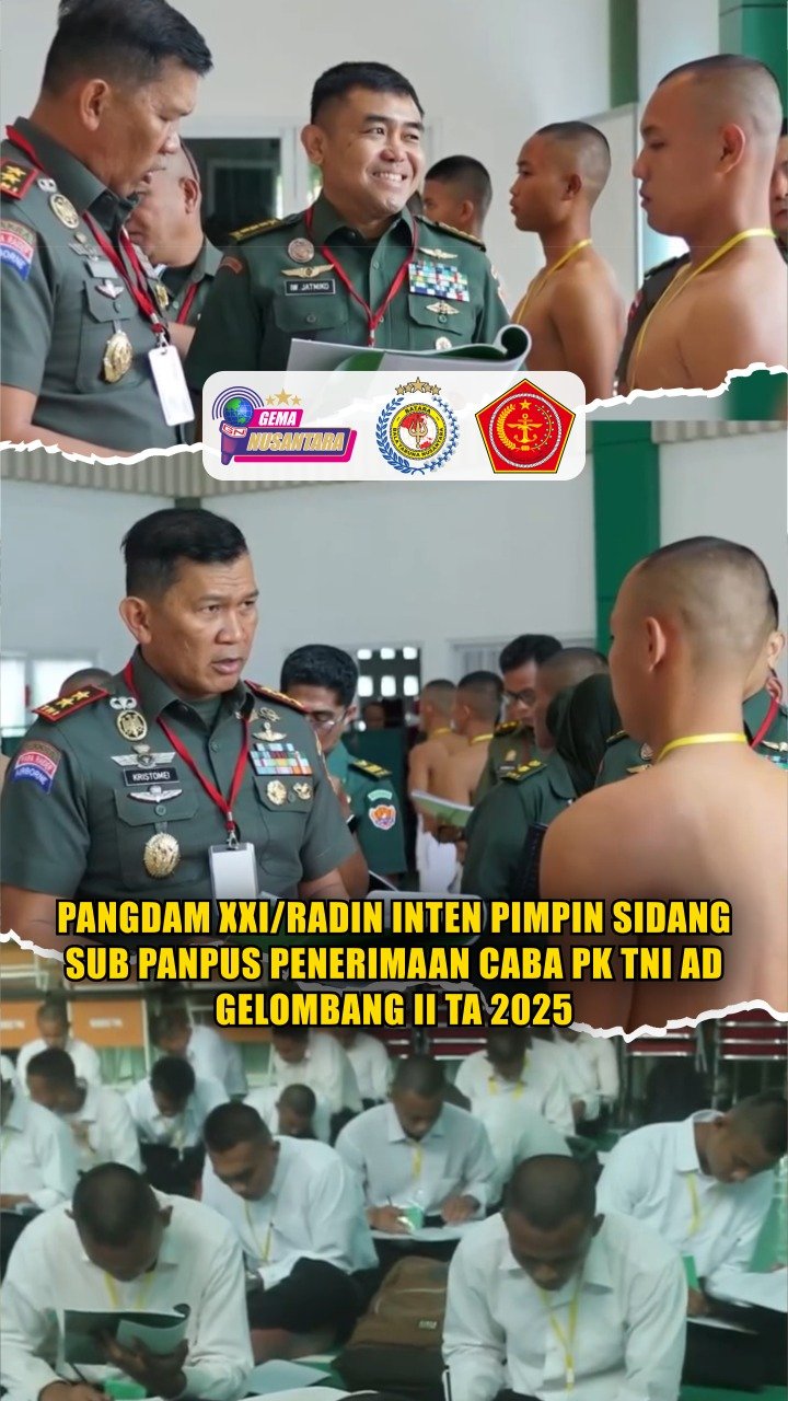 Pendam XXI/RI – Pangdam XXI/Radin Inten Mayjen TNI Kristomei Sianturi, S.Sos., M.Si.(Han) memimpin Sidang Sub Panpus Penerimaan Caba PK TNI AD Gelombang II TA 2025 di Aula Sudirman Makodam XXI/Radin Inten, Rabu 5 November 2025.