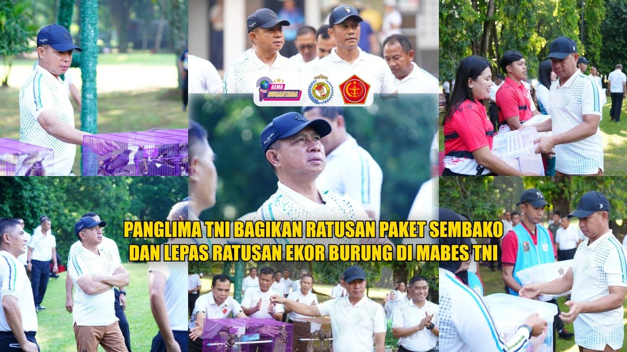 (Puspen TNI). Panglima TNI Jenderal TNI Agus Subiyanto, S.E., M.Si., melaksanakan kegiatan sosial dengan membagikan 600 paket sembako kepada masyarakat serta melepas 500 ekor burung di Mabes TNI Cilangkap, Jakarta Timur, Jumat (12/9/2025). Sebagai wujud kepedulian TNI kepada masyarakat sekaligus upaya menjaga keasrian lingkungan sekitar.
