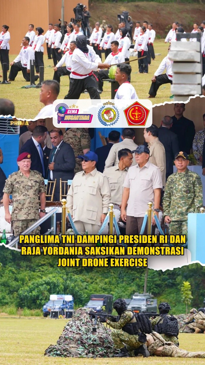 (Puspen TNI). Panglima TNI Jenderal TNI Agus Subiyanto, S.E., M.Si., mendampingi Presiden RI Prabowo Subianto dalam menerima kunjungan kehormatan Raja Yordania Abdullah II Ibn Al-Hussein menyaksikan Demonstrasi Joint Drone Exercise antara TNI dengan Jordan Armed Forces di Lapangan Tembak Brigif 1 Kopasgat, Halim Perdanakusuma, Jakarta. Sabtu (15/11/2025).