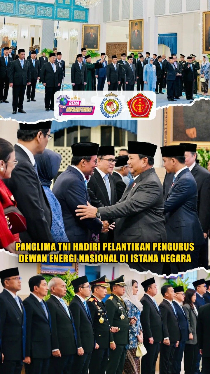 Puspen TNI). Panglima TNI Jenderal TNI Agus Subiyanto, S.E., M.Si., menghadiri acara pelantikan pengurus Dewan Energi Nasional (DEN) periode 2026–2030 yang dipimpin langsung oleh Presiden RI Prabowo Subianto di Istana Kepresidenan, Jakarta, Rabu (28/1/2026).