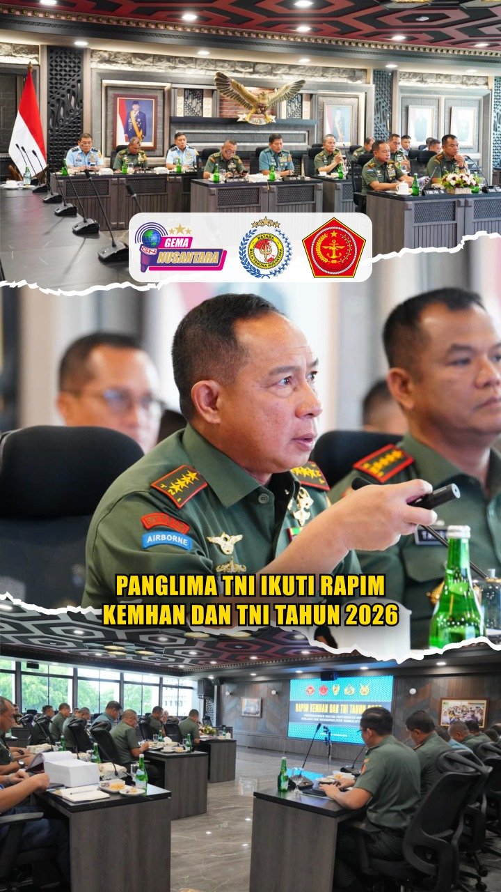 (Puspen TNI). Panglima TNI Jenderal TNI Agus Subiyanto, S.E., M.Si., mengikuti Rapat Pimpinan (Rapim) Kementerian Pertahanan dan TNI Tahun 2026 secara daring dari Markas Besar TNI, Jakarta, Senin (19/1/2026). Dipimpin langsung oleh Menhan RI Jenderal TNI (Purn.) Dr. Sjafrie Sjamsoeddin, M.B.A., melalui video conference dari Kantor Kementerian Pertahanan RI, Jakarta. Di ikuti Wakil Panglima beserta Jajaran dan beberapa sektor terkait.