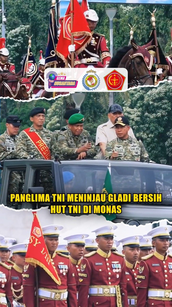 Puspen TNI – Panglima TNI Jenderal TNI Agus Subiyanto, S.E., M.Si., meninjau gladi bersih di Monas, yang berlangsung tertib dan lancar dengan parade pasukan, defile, serta atraksi udara dan darat.