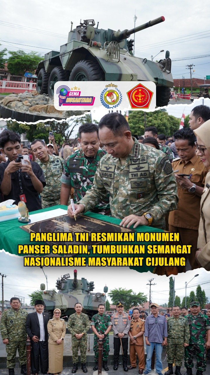 (Puspen TNI). Panglima TNI Jenderal TNI Agus Subiyanto, S.E., M.Si., meresmikan Monumen Panser Saladin di Bundaran Alun-Alun Cijulang, Kabupaten Pangandaran, Jawa Barat, Selasa (20/1/2026).