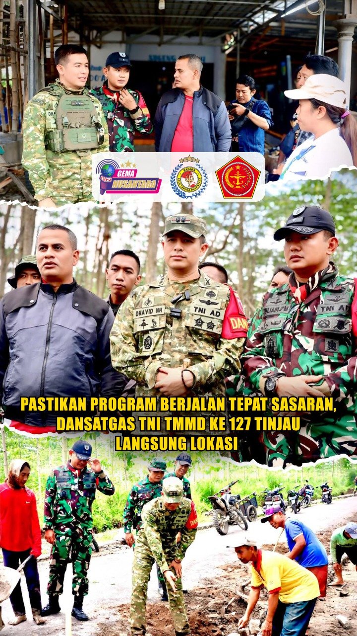 KEDIRI – Dansatgas TNI Manunggal Membangun Desa (TMMD) ke-127, Letkol Inf Dhavid Nur Hadiansyah, S.Sos., M.A.P., melakukan peninjauan langsung ke sejumlah titik sasaran TMMD di Desa Gadungan, Kecamatan Puncu, Kabupaten Kediri, Senin 16 Februari 2026. Guna memastikan seluruh pelaksanaan program TMMD berjalan sesuai dengan sisi kualitas pekerjaan maupun ketepatan waktu penyelesaian.