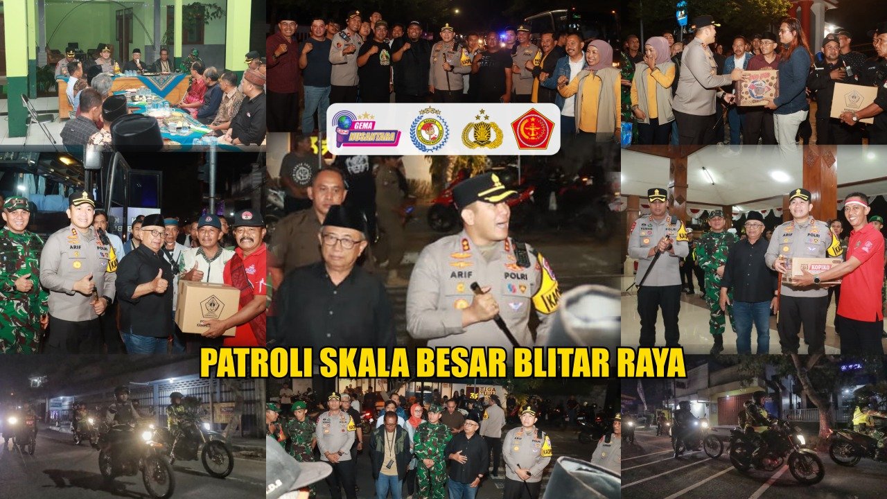 Blitar – Polri, TNI, Pemkab, dan Pam Swakarsa dari Desa Karangsono dan Desa Gaprang, Senin (01/09/2025) Gelar Patroli Skala Besar. Turut hadir Kapolres Blitar AKBP Arif Fazlurrahman, S.H., S.I.K., M.Si., dan Wakapolres, Kapolres Blitar Kota, Dandim 0808/Blitar, Bupati Blitar, Ketua DPRD, serta unsur Forkopimda Kabupaten Blitar, yang menunjukkan sinergi kuat dalam menjaga keamanan wilayah.