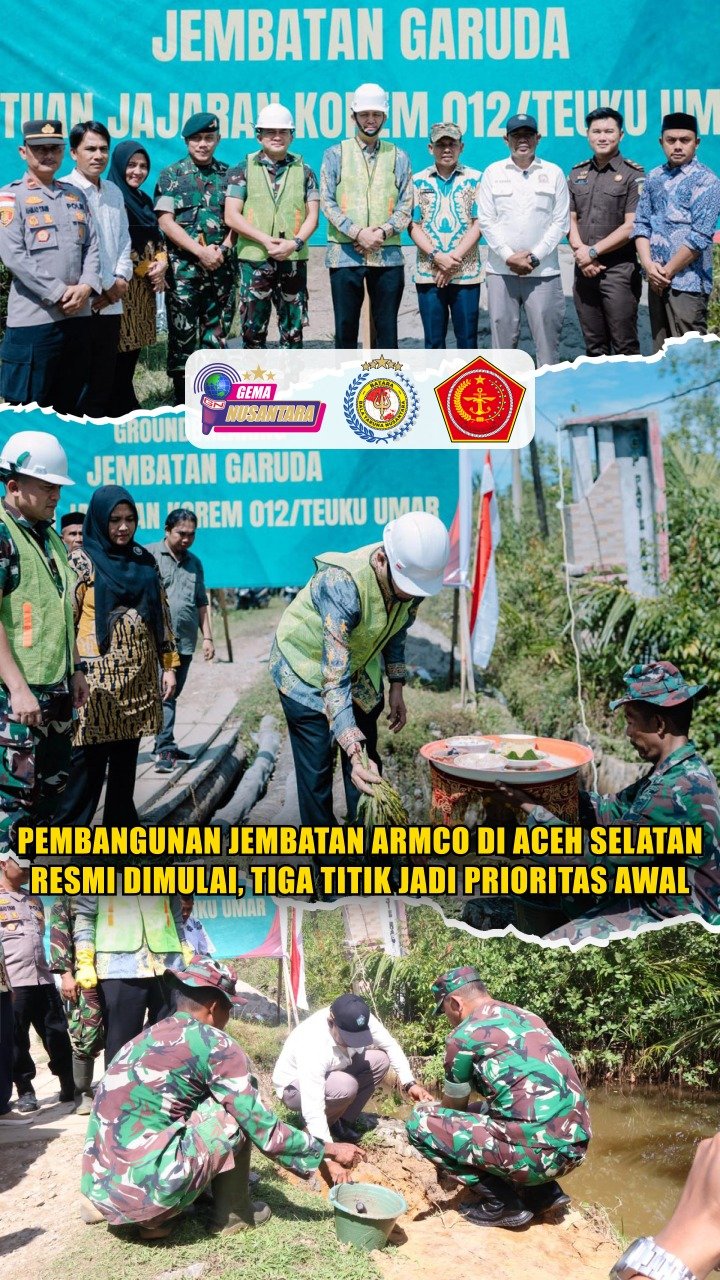Pendam IM – Pembangunan Jembatan Armco di Kabupaten Aceh Selatan resmi dimulai, ditandai dengan pelaksanaan peletakan batu pertama yang berlangsung di Desa Pasi Rasian, Kecamatan Pasi Raja, Kamis (02/04/2026). Dan secara serentak di bawah naungan Kodam Iskandar Muda.