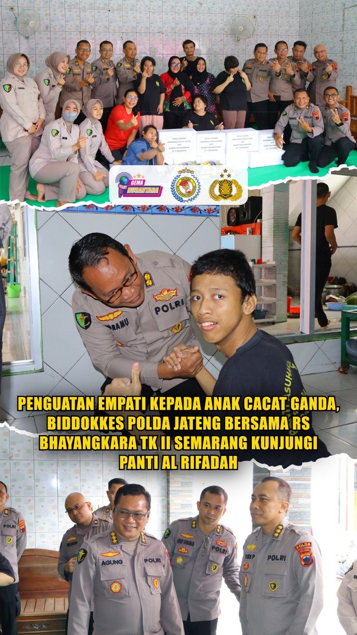(PID Biddokkes Polda Jateng) – Dalam rangka penguatan empati dan kepedulian sosial, Biddokkes Polda Jawa Tengah bersama RS Bhayangkara TK II Semarang mengunjungi Panti Asuhan Al Rifadah yang merawat anak-anak cacat ganda. Kamis 12 Februari 2026.