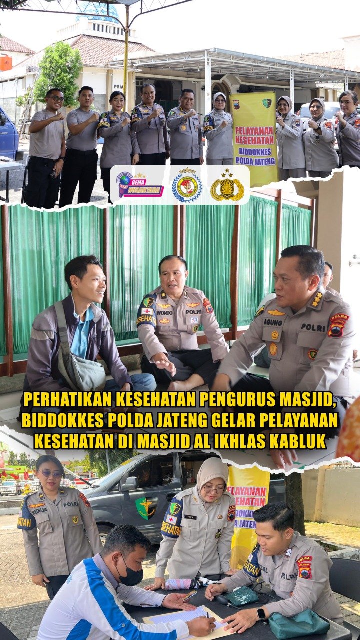 (PID Biddokkes Polda Jateng) – Sebagai bentuk kepedulian terhadap kesehatan pengurus masjid, Biddokkes Polda Jawa Tengah menggelar pelayanan kesehatan di Masjid Al Ikhlas Kabluk. Di pimpin langsung Kabiddokkes Polda Jateng Kombes Pol drg. Agung Hadi Wijanarko, Sp.BM., M.A.R.S., M.H., FISQua.