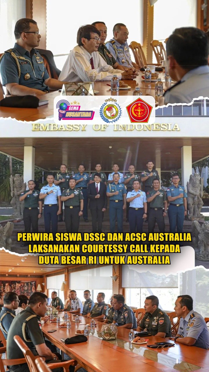(Puspen TNI). 8 orang Perwira Siswa TNI, yang sedang menempuh pendidikan yaitu 4 Perwira di Defence and Strategic Studies Course (DSSC) dan 4 Perwira di Australian Command and Staff Course (ACSC) Australia, didampingi Atase Pertahanan RI, Laksma TNI Yusliandi Ginting, S.E., MMP., melaksanakan Courtesy Call (CC) kepada Duta Besar Republik Indonesia untuk Australia, Dr. Siswo Pramono, di Canberra, Australia, Jumat, (9/01/2026).